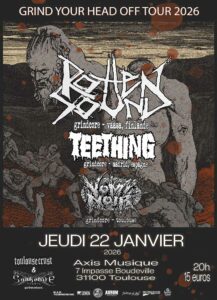 Ils seront accompagnés de TEETHING (espagne) et des locaux de VOMI NOIR, 2 solides références de la scène grindcore !!!
