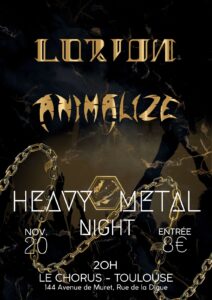 ANIMALIZE : Tout droit venu de Lyon, ce phénomène incarnant l’esprit 80’s et la force brute du Heavy Old School fera vibrer même les plus exigeants ! Virtuosité instrumentale, style sans concession, énergie détonante, les ingrédients de ce dangereux cocktail promettent une grande claque en pleine face !