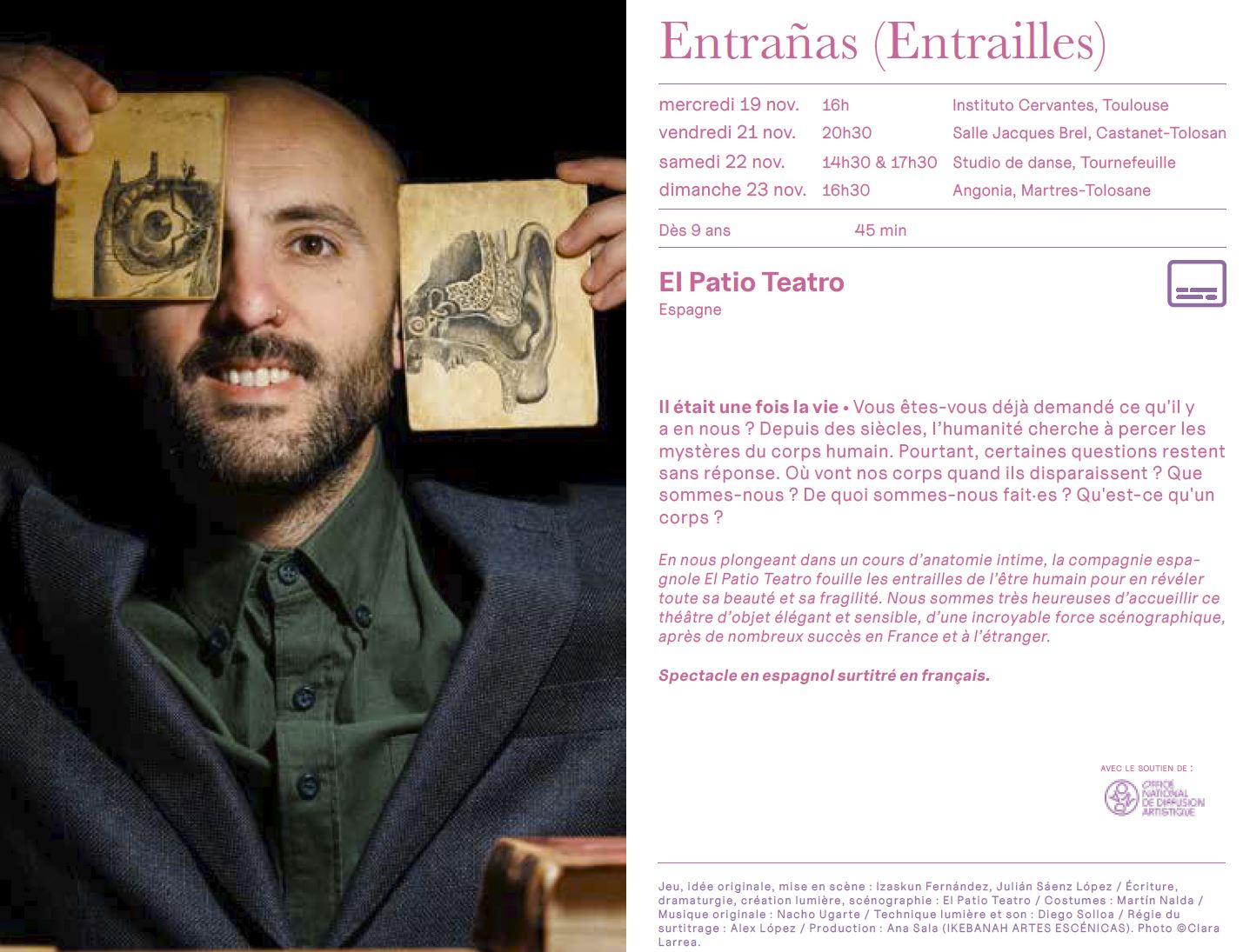 - 16h : “Entrañas” (durée 45mn), à l’Instituto Cervantes (31, rue des Chalets, Toulouse) COMPLET