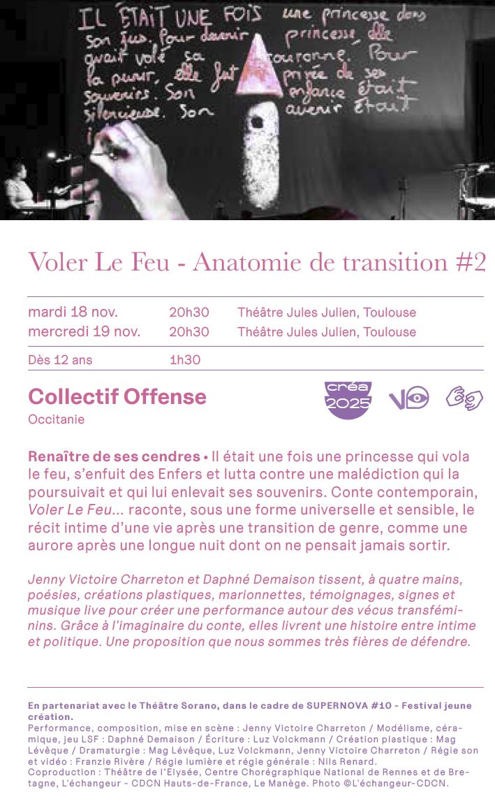 - 20h30 : “Voler le feu, anatomie d’une transition #2” (durée 1h30), au théâtre Jules Julien (6, avenue des Ecoles J. Julien, Toulouse)
