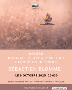 Venez rencontrer Sébastien BLOMME, Auteur Photographe Nature pour partager sa vision et sa démarche artistique en toute convivialité au studio de PI le jeudi 9 octobre 2025 à 20h30. La présentation sera suivie d’échanges ouverts avec les participants. Places limitées, Réservez vite !
