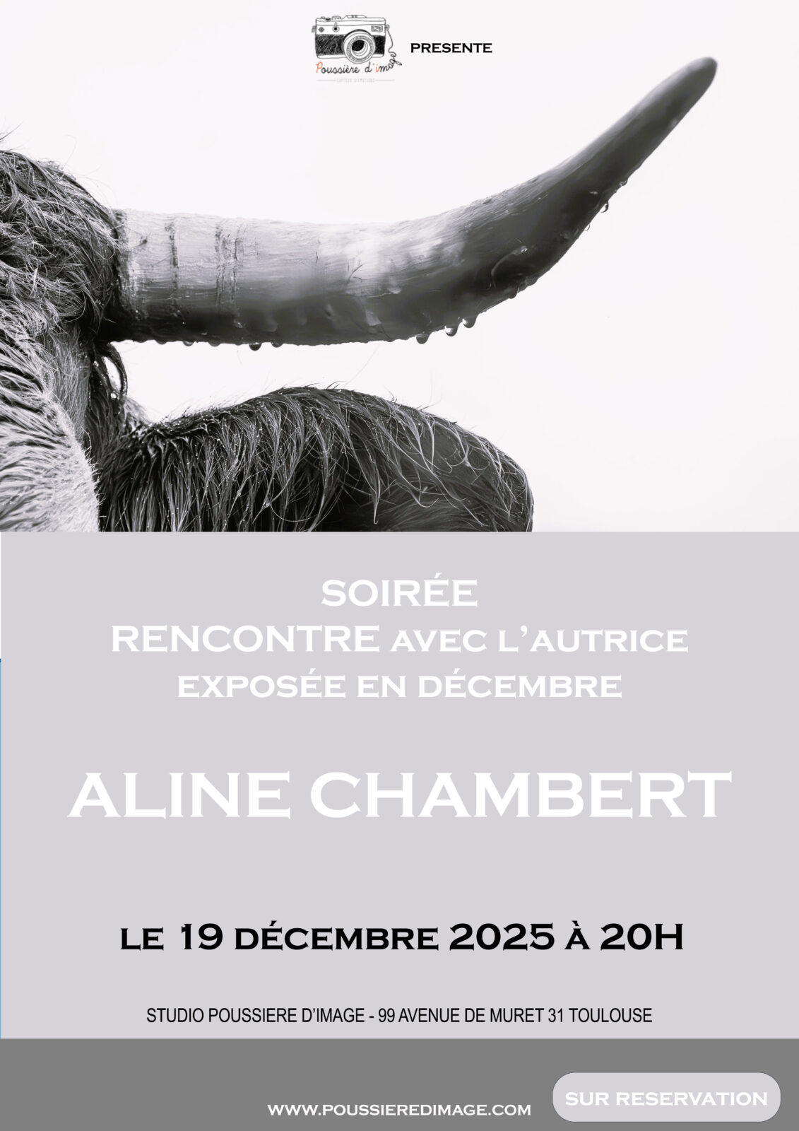 Ce Vendredi 19 Décembre 2025, à 20h (seulement sur réservation) au Studio Poussière d’image, 99 avenue de Muret, Toulouse Rencontre en présentiel avec l’artiste exposée ! Venez échanger avec Aline Chambert, insatiable amoureuse de Lumière ! Elle nous expliquera sa démarche photographique, et particulièrement celle concernant son travail exposé au studio : “En quête de lumière”. Places limitées, réservez vite : expo@poussieredimage.com